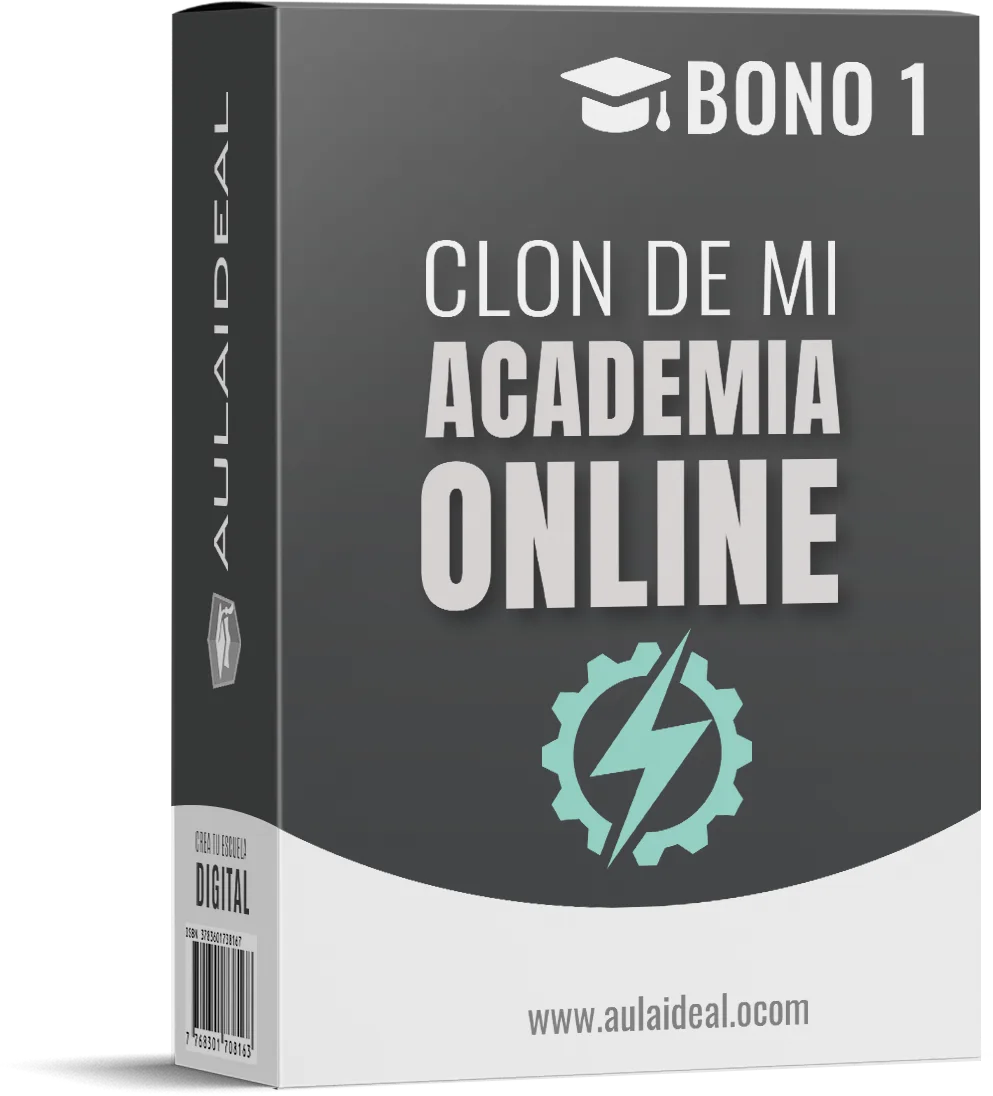Te vamos a brindar, como primer bono, un CLON DE MI ACADEMIA ONLINE. Este es el proyecto finalizado que construimos en el curso. De esta manera, tendrás lista tu propia escuela online, en menos de 1 hora.