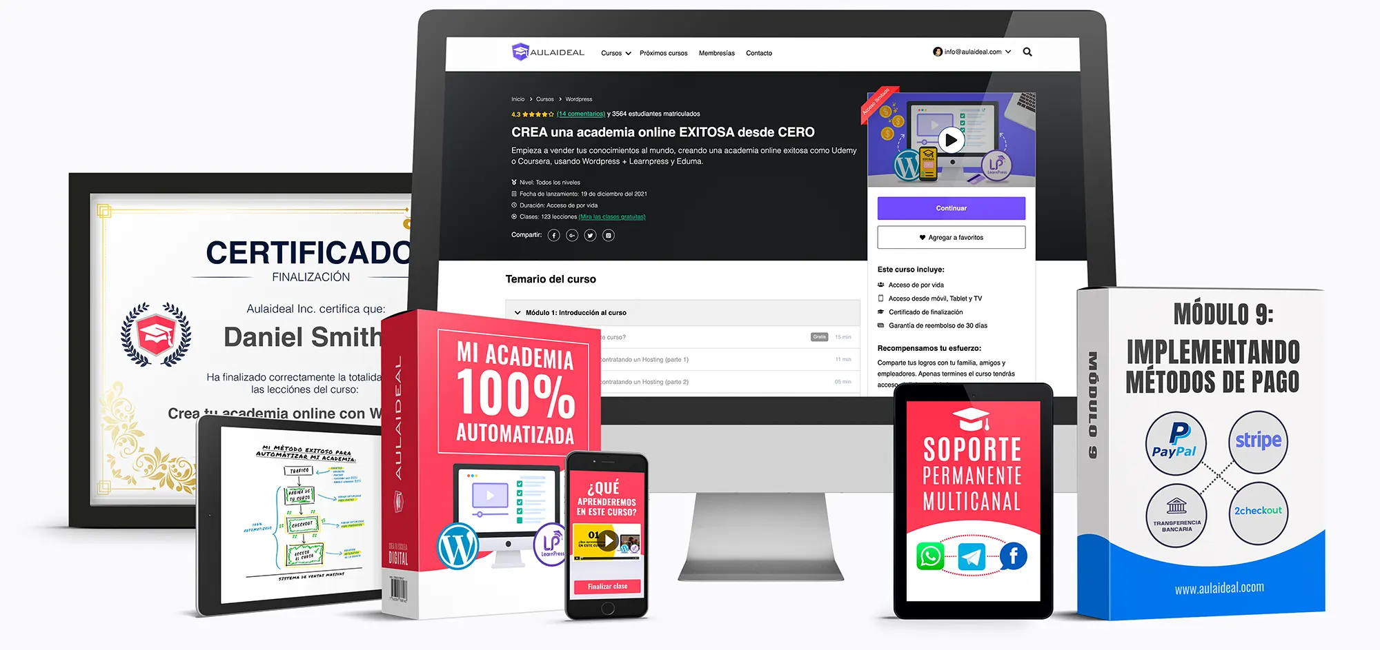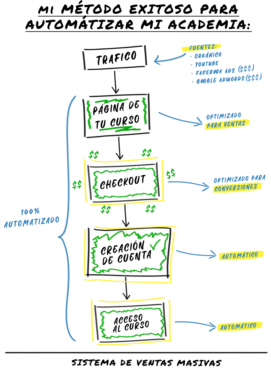 Hasta que después de muchos años, logré construir mi propia escuela digital, con todos lo que necesitaba para vender mis cursos de manera exitosa y masiva por internet.